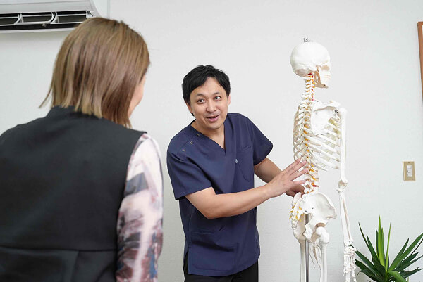 骨模型などを使って、専門用語を使わず、誰もが「なるほど!」と納得できる分かりやすい言葉で、丁寧に、そして根気強く指導いたします。