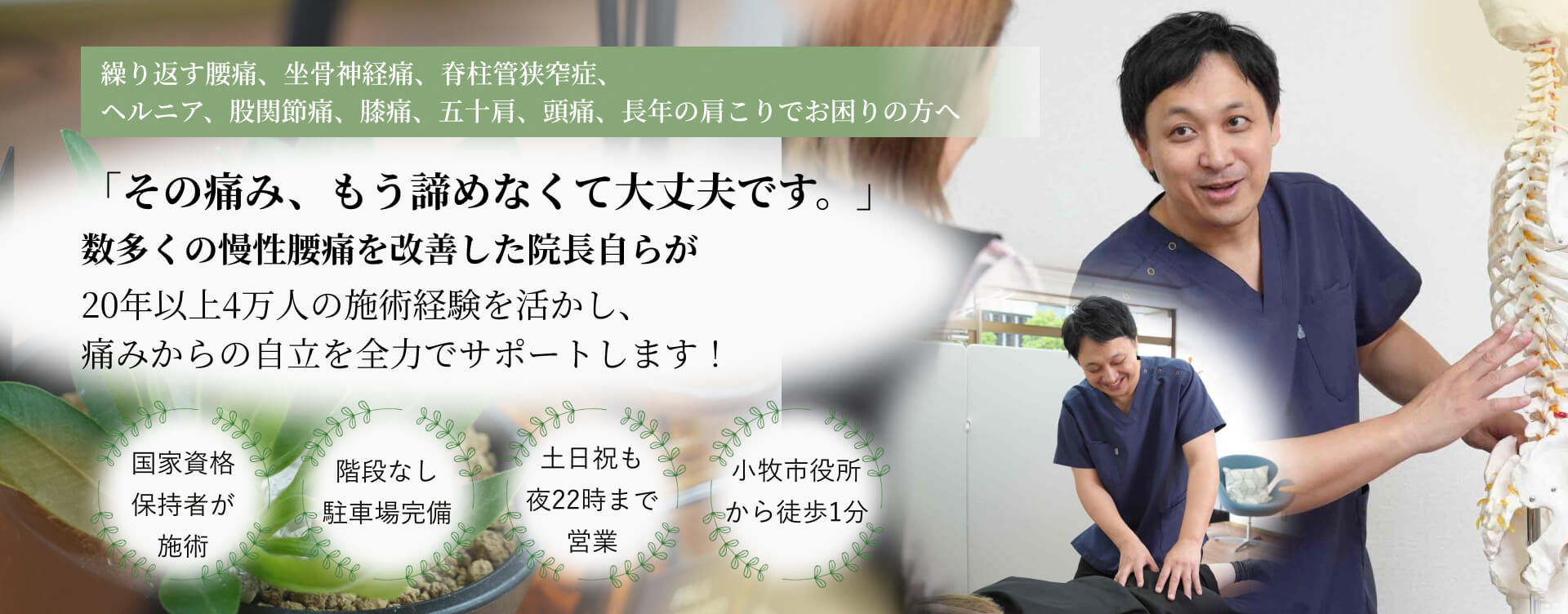 それは、私、院長自身が、かつてあなたと同じように、ひどい腰痛や痺れ、ぎっくり腰に長年苦しんだ経験があり、そして自分自身の力でそれを乗り越えてきたからです。